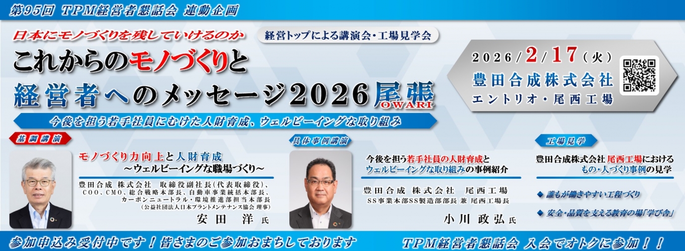 - <豊田合成・2026年2月17日開催>【講演会・工場見学会】これからのモノづくりと経営者への メッセージ2026尾張の申込受付を開始しました